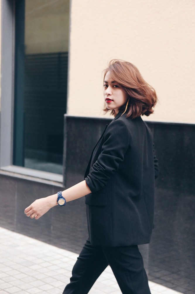 Không chọn cho mình quá nhiều phụ kiện đi kèm, kết hợp với những mẫu thiết kế mang tính cơ bản, Hoàng Thuỳ Linh đã làm nổi bật lên mái tóc ngắn cá tính của mình. Những gam màu đơn giản và đối lập như Đen – Đỏ - Trắng, một trong những phong cách mix trang phục điển hình của trào lưu thời trang Minimalizm chưa bao giời lỗi thời.