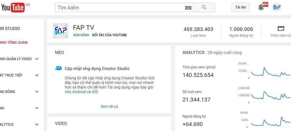 Kênh giải trí FAPTv chính thức đạt cột mốc 1 triệu lượt người theo dõi trên Youtube