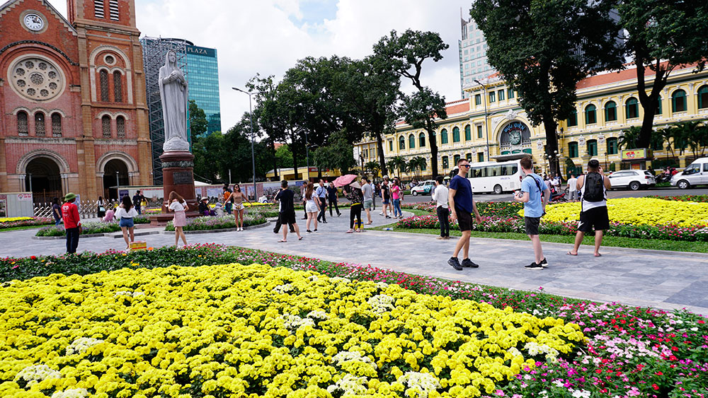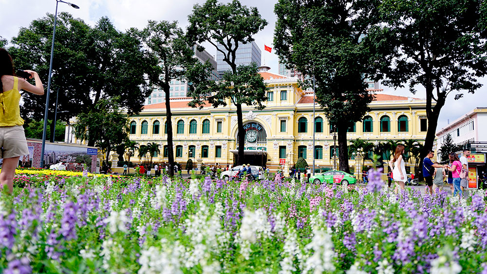 Các tiểu cảnh hoa còn góp phần mang đến sự mới lạ cho các góc nhìn về phía các công trình kiến trúc biểu tượng của Sài Gòn như kiến trúc nhà thờ Đức Bà, Bưu điện thành phố…