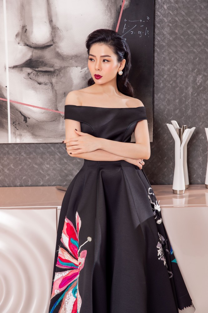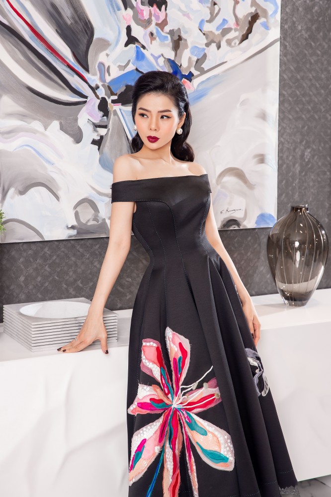 Một trong số các NTK khá thân thuộc với nữ ca sỹ đó chính là Công Trí. Hiểu được gu của người mặc, Công Trí đã tạo nên những chiếc đầm với hai màu chủ đạo đen & trắng, có độ dài vừa phải và đặc biệt là tất cả các thiết kế đều hở vai, tạo cho Lệ Quyên một vẻ quyến rũ, kiêu sa và sang trọng. Các thiết kế thù hợp cho nữ ca sỹ đi dự các sự kiện & trình diễn trên sân khấu. Lệ Quyên cùng ekip quyết định “mượn” không gian nội thất tại Phố Xinh để sản xuất bộ ảnh cho phù hợp với tinh thần của các bộ trang phục.