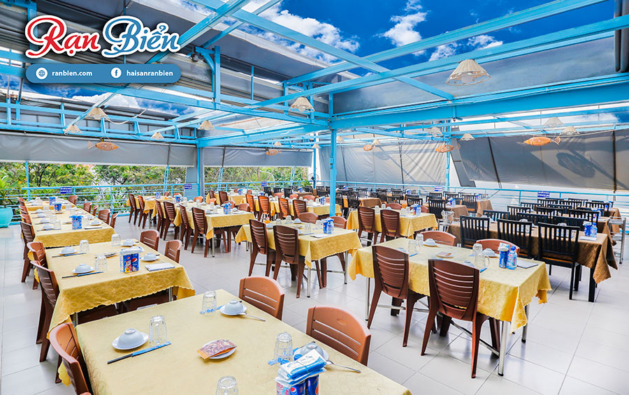 Điểm đặc biệt của khu vực ngoài trời này chính là mái che có thể được kéo ra đề phòng những lúc trời mưa gió nên thực khách có thể hoàn toàn yên tâm khi lựa chọn dùng bữa tại Rạn Biển 2.