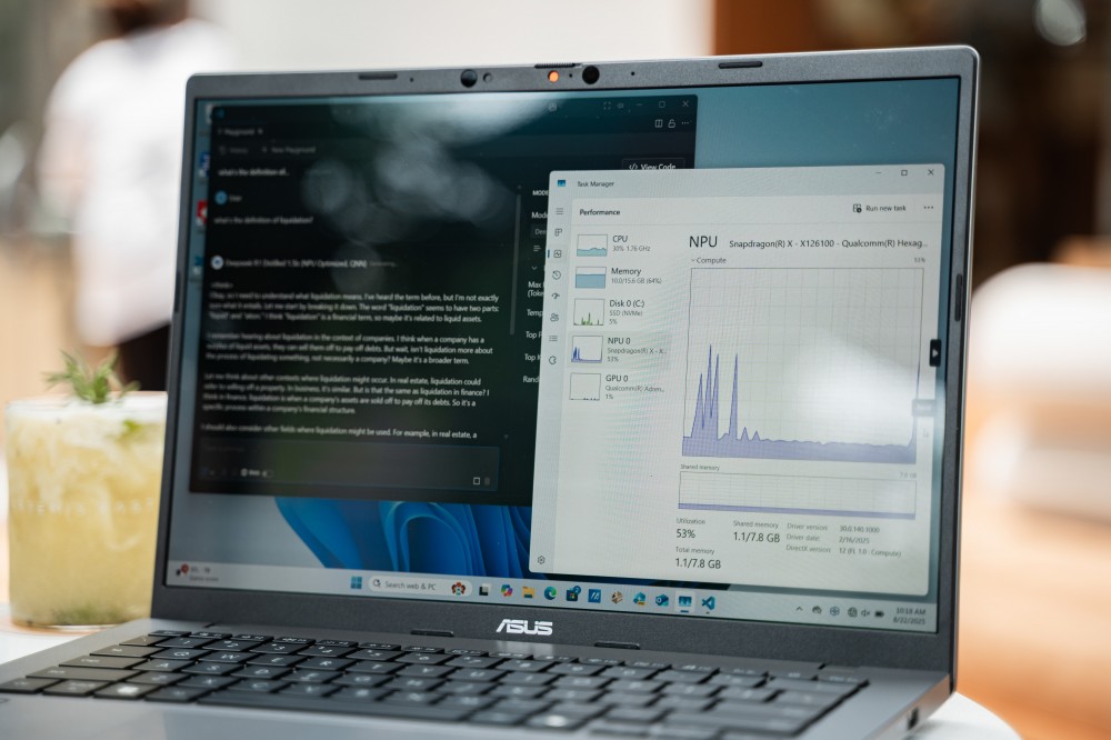 Đặc biệt, máy hỗ trợ chạy các mô hình ngôn ngữ đã được tối ưu hóa riêng cho nền tảng Snapdragon™ - điển hình là DeepSeek R1 vừa được phát hành gần đây. Bàn phím cũng tích hợp phím Copilot chuyên dụng, cho phép người dùng truy cập nhanh vào trợ lý AI của Windows 11 chỉ bằng một thao tác.
