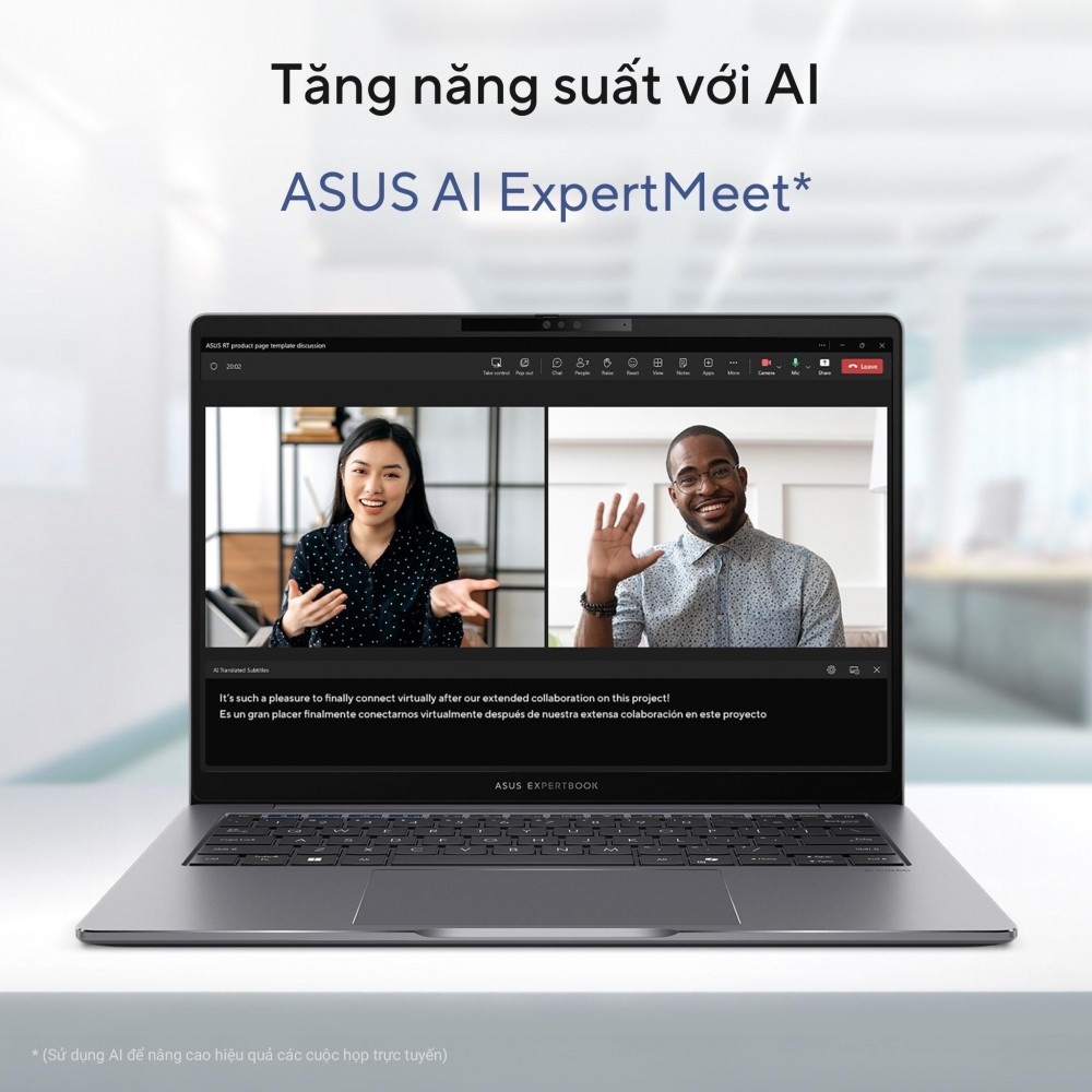 AI chạy cục bộ, tích hợp sâu: Không chỉ là phần cứng mạnh mẽ, Expert Series còn mang đến bộ công cụ ASUS AI ExpertMeet giúp nâng tầm năng suất công việc. Từ ghi lại biên bản họp hỗ trợ Tiếng Việt, tạo bản tóm tắt ngắn gọn, hiển thị phụ đề song ngữ theo thời gian thực đến tự động dịch tức thì – toàn bộ đều được xử lý ngay trên thiết bị, vừa đảm bảo tốc độ phản hồi, vừa giữ trọn vẹn tính bảo mật dữ liệu.