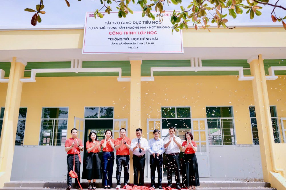Ngày 16.09.2025, tại tỉnh Cà Mau, tập đoàn Central Retail Việt Nam đã tổ chức Lễ Bàn giao Công trình lớp học cho Trường Tiểu học Đông Hải (tại ấp 16, xã Vĩnh Hậu, tỉnh Cà Mau), góp phần quan trọng vào việc cải thiện chất lượng giáo dục của nhà trường.