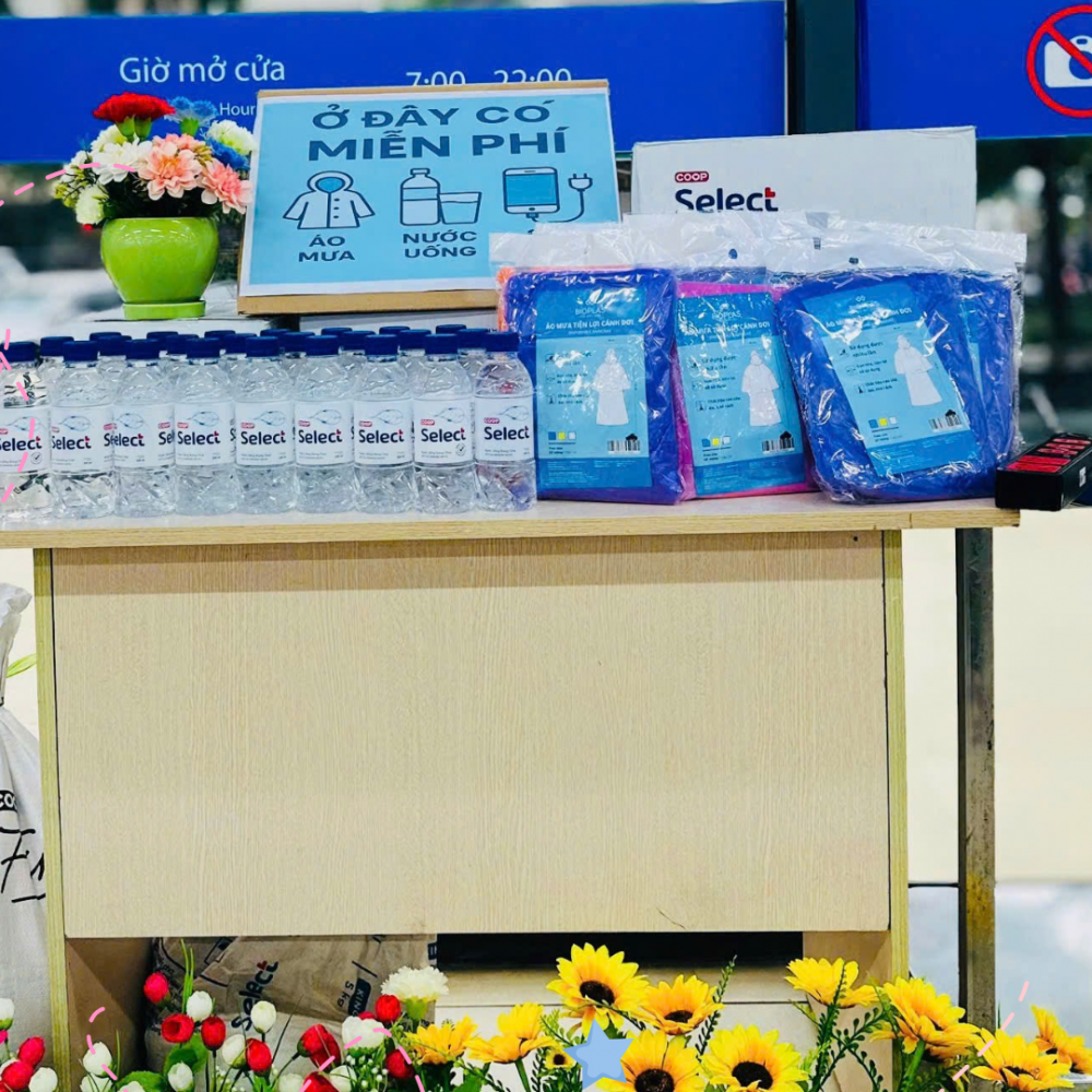 Mỗi siêu thị, cửa hàng trực thuộc Co.op còn được quán triệt tăng cường biện pháp an toàn: sắp xếp khu vực trưng bày riêng cho hàng dự trữ thiết yếu, thường xuyên châm đầy kệ hàng, gia cố cơ sở vật chất và bố trí lối đi thoáng để người dân an toàn khi mua sắm. Đặc biệt, siêu thị của Saigon Co.op tại khu vực tâm bão như Co.opmart Hà Tĩnh, Co.opmart Thanh Hóa còn được bố trí thành điểm hỗ trợ khẩn cấp: mở cửa sẵn sàng đón người dân đến trú ẩn trong những giờ phút khẩn cấp, cung cấp miễn phí nước uống, khu vực nghỉ ngơi, hỗ trợ điện sạc cho các thiết bị di động để người dân duy trì kết nối liên lạc, đảm bảo an toàn trong lúc chờ bão đi qua.