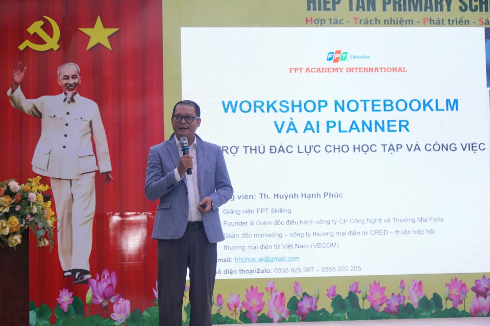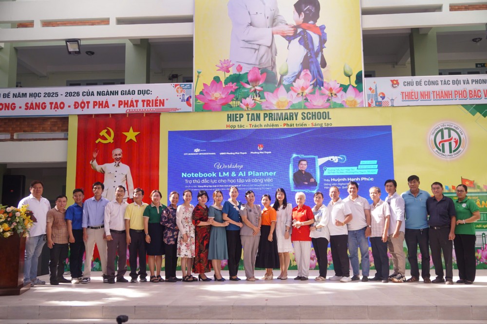 Ngày 04.10.2025 tại Trường Tiểu học Hiệp Tân, UBND Phường Phú Thạnh phối hợp với Viện Đào tạo Quốc tế FPT tổ chức workshop “Notebook LM & AI Planner - Trợ thủ đắc lực cho học tập và công việc”.