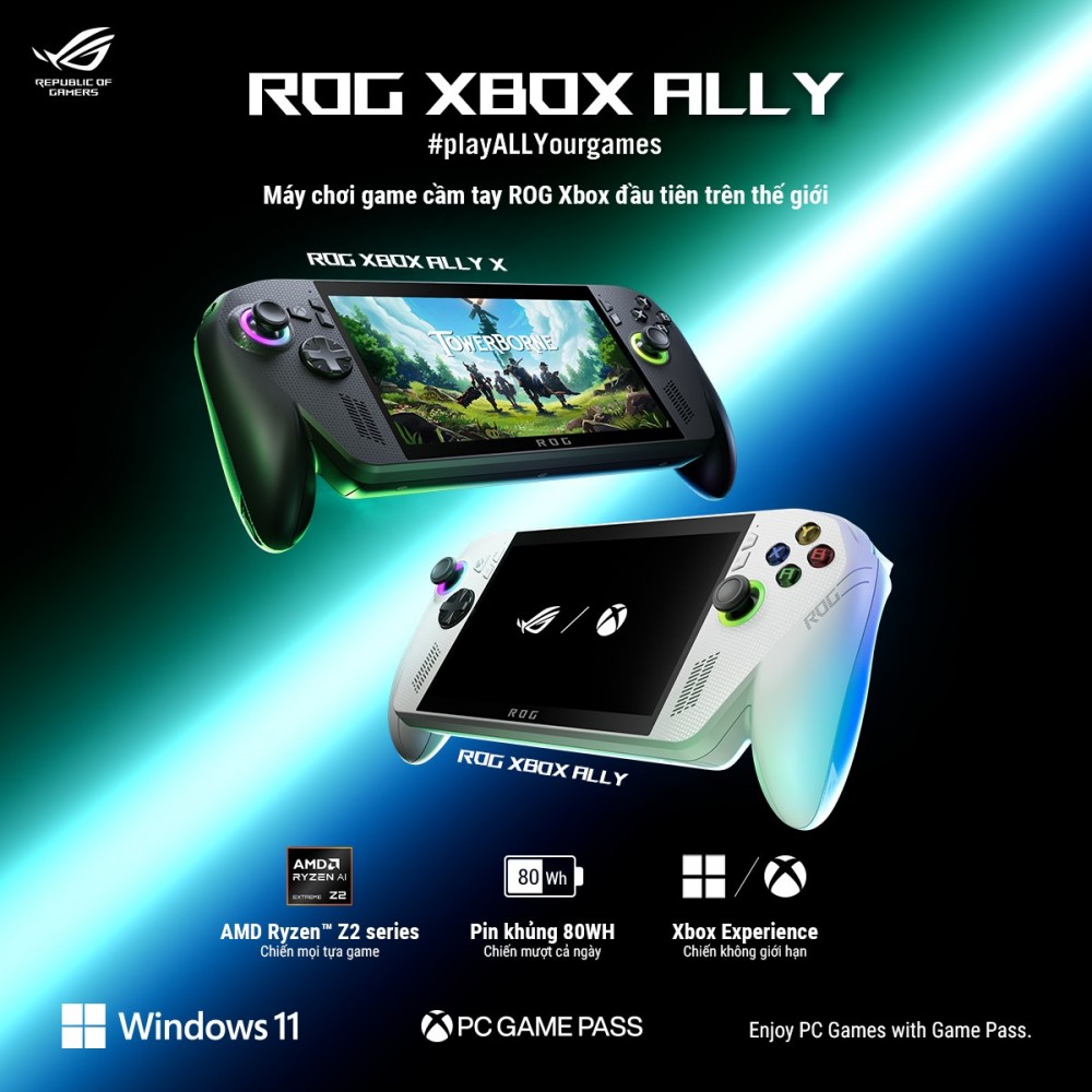 ROG Xbox Ally có mức giá 14,990,000VND với cấu hình AMD Ryzen Z2A, 16GB RAM và 512GB SSD. Phiên bản cao cấp ROG Xbox Ally X trang bị AMD Ryzen AI Z2 Extreme, 24GB RAM và 1TB SSD có mức giá 24,990,000VND.